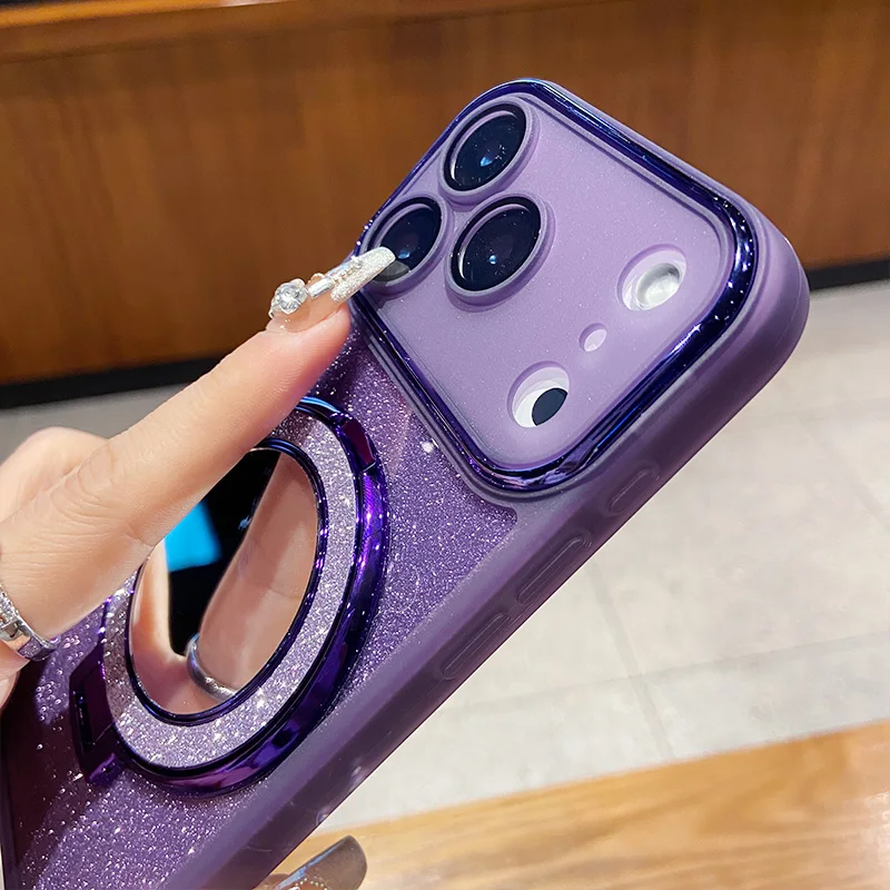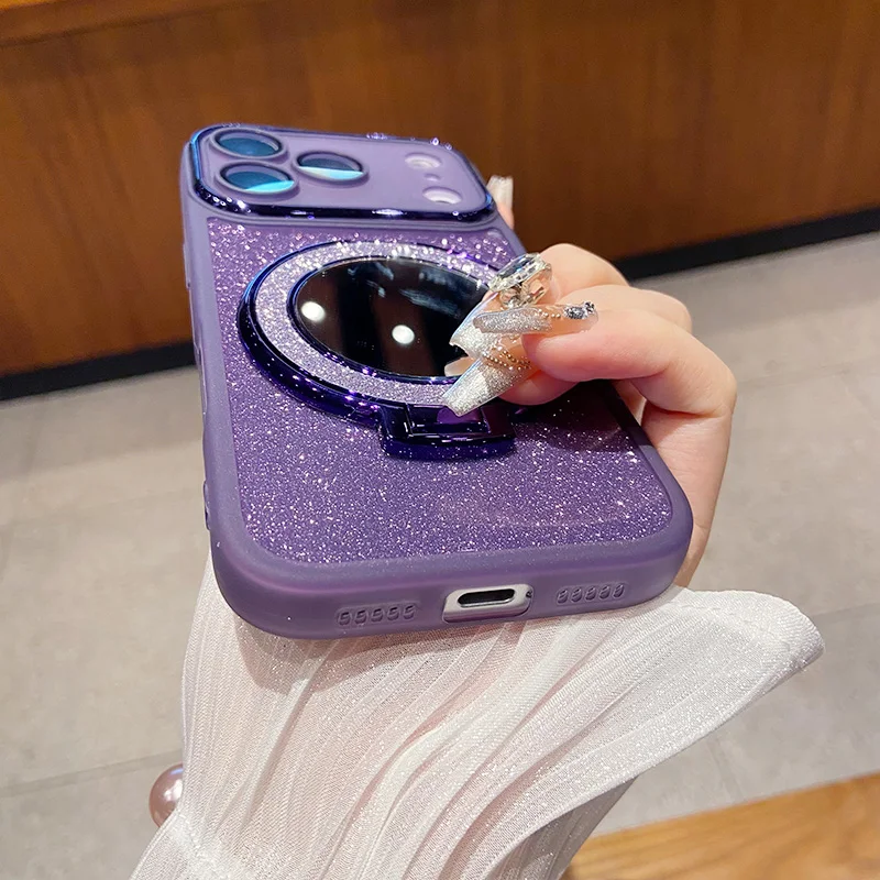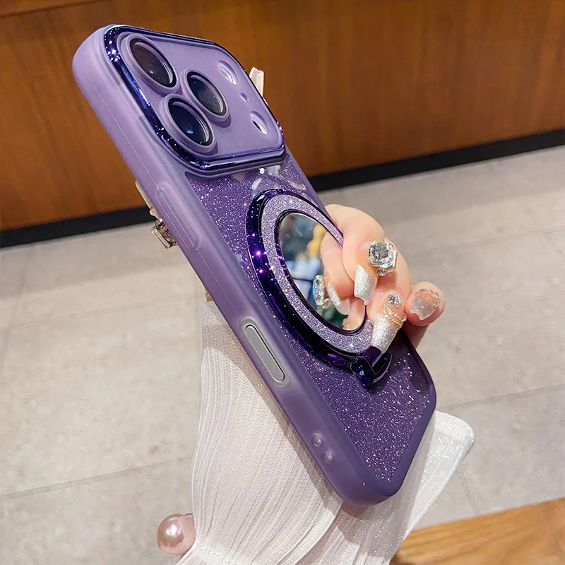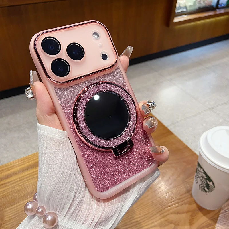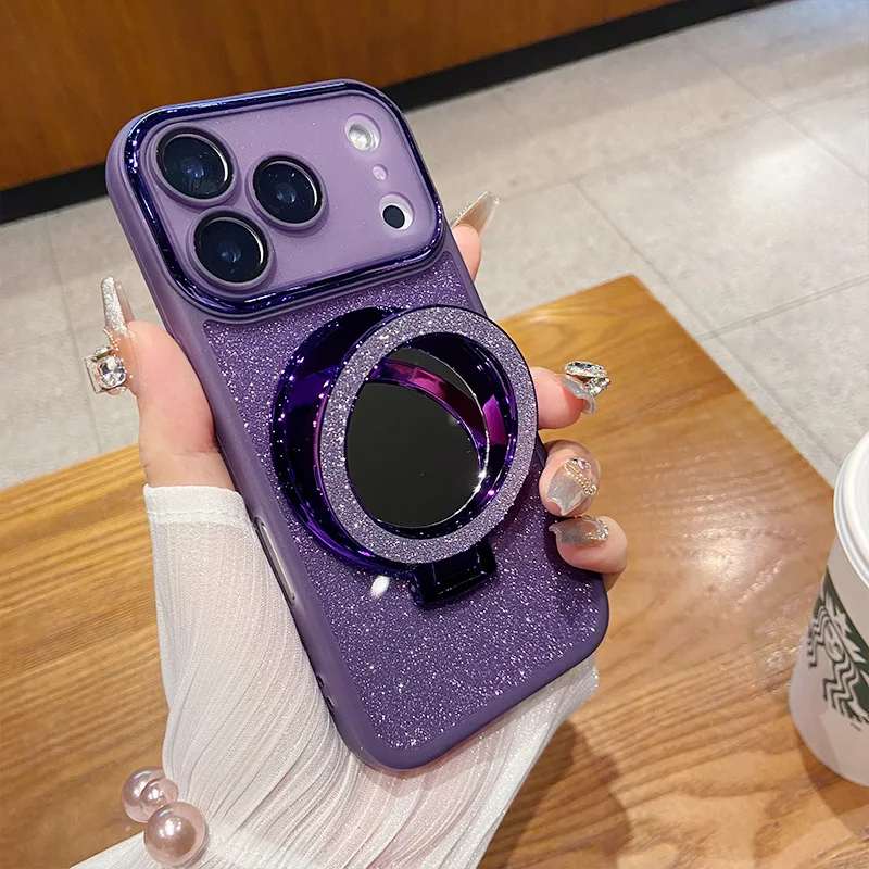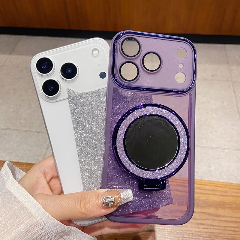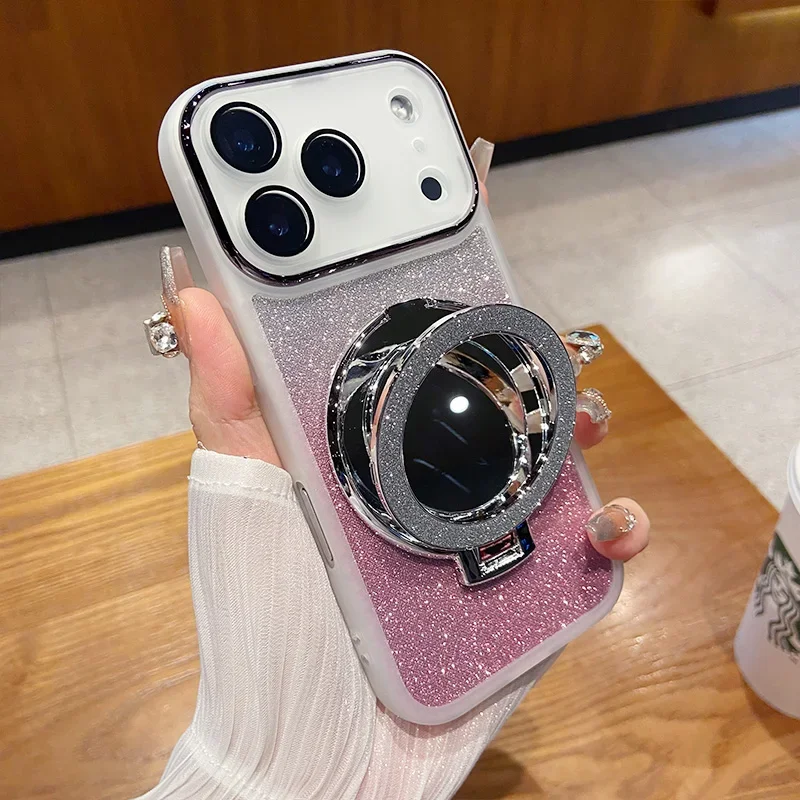 Fashion Glitter Magnetic Phone Case for Iphone 17 Pro Max Air 16 15 Mirror Bracket Dustproof Camera Lens Protect Cover