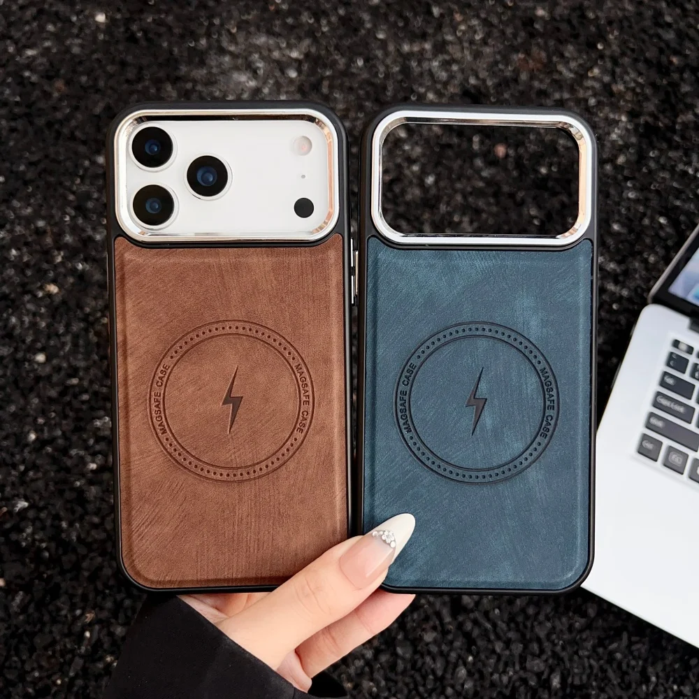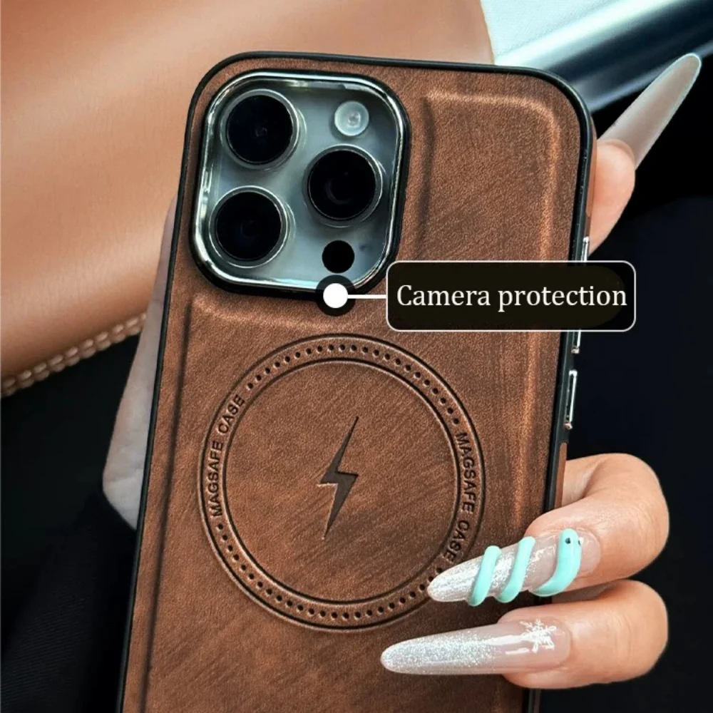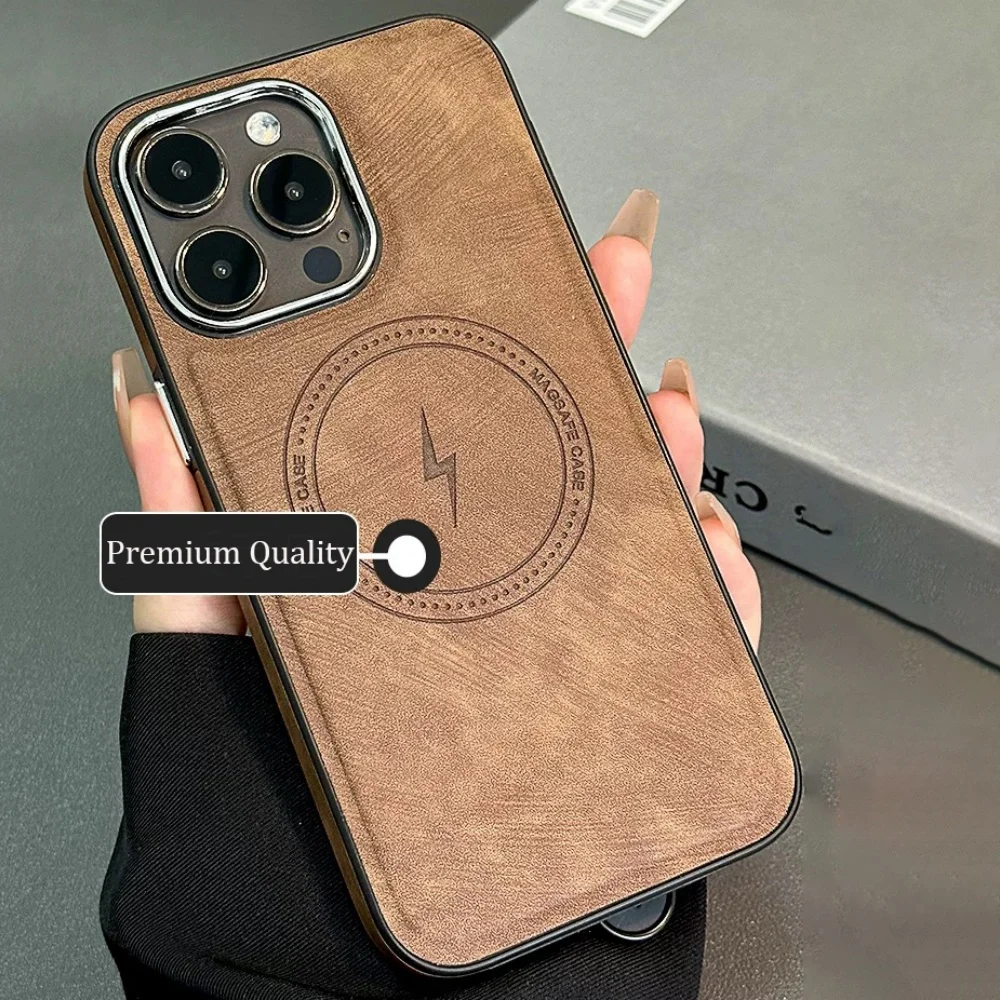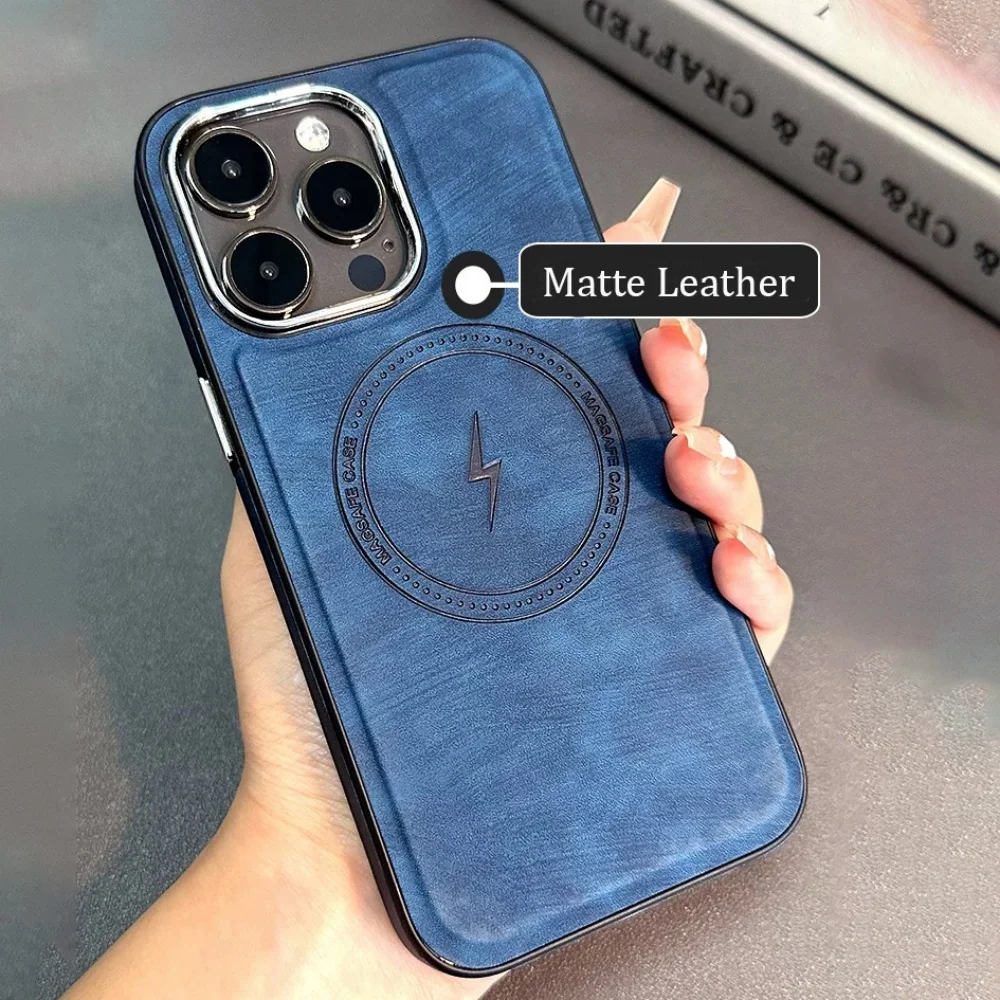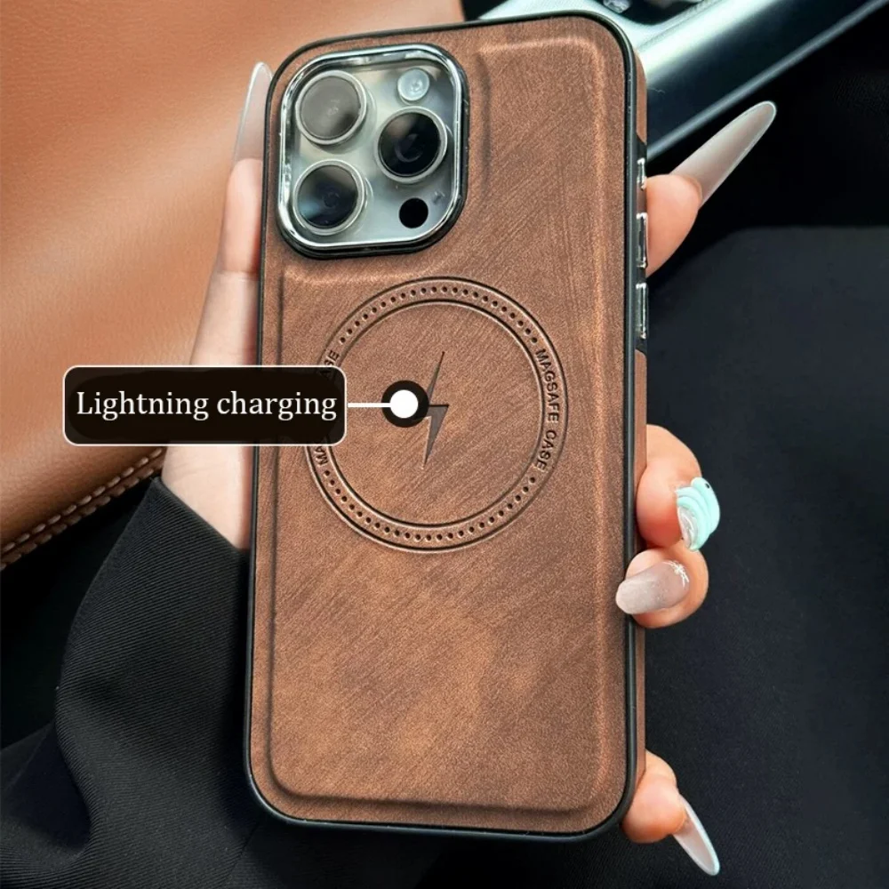 Lightning Charging Leather Magnetic Case For iPhone 17 Air 17 16 15 14 13 Pro Max Plus XS XR for Magsafe Matte Retro Cover