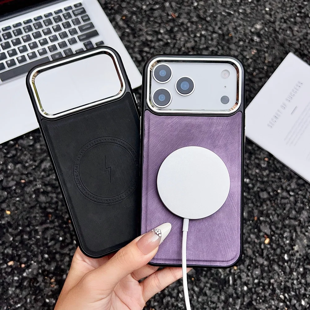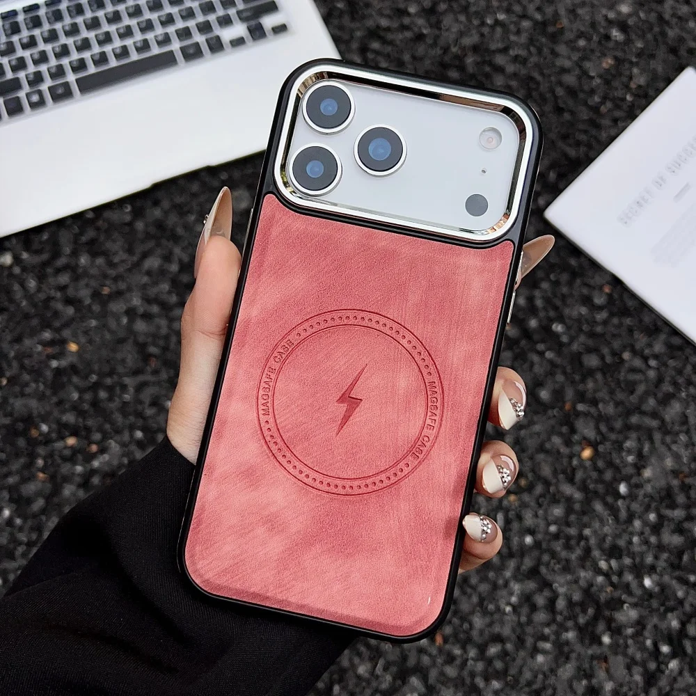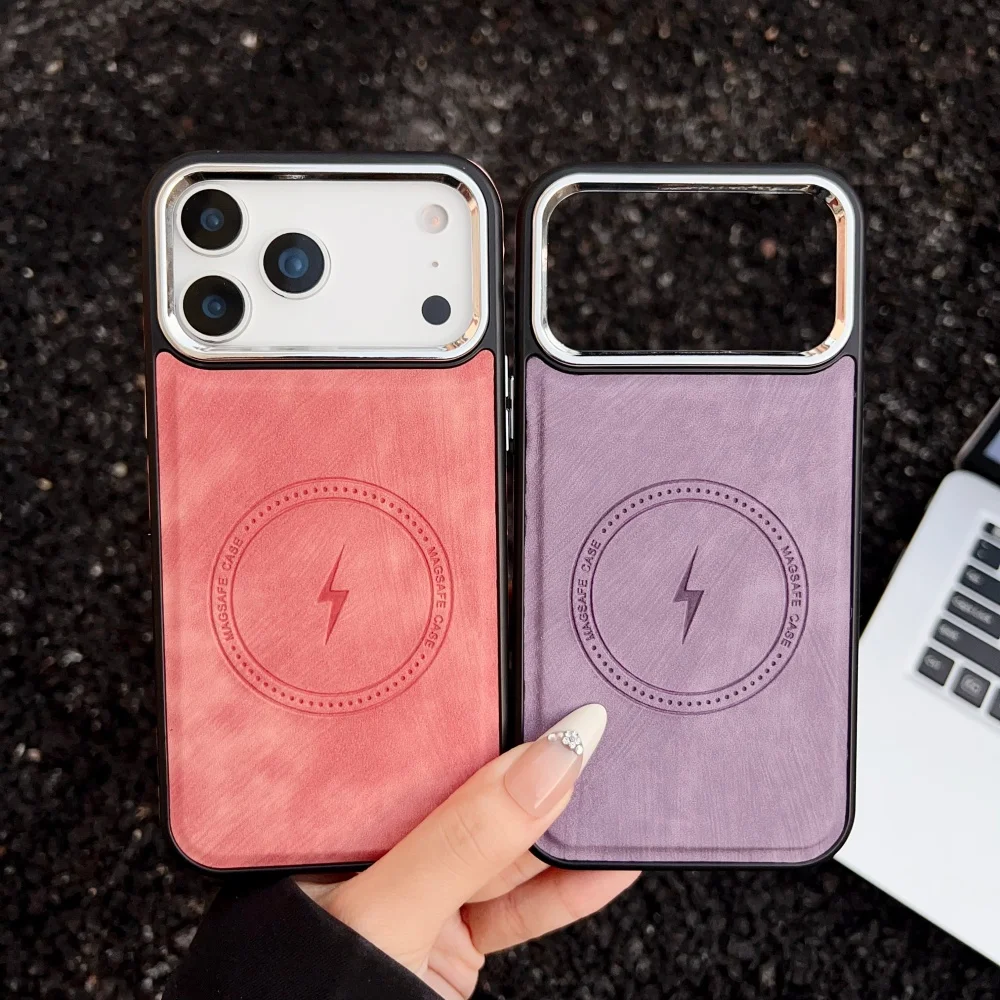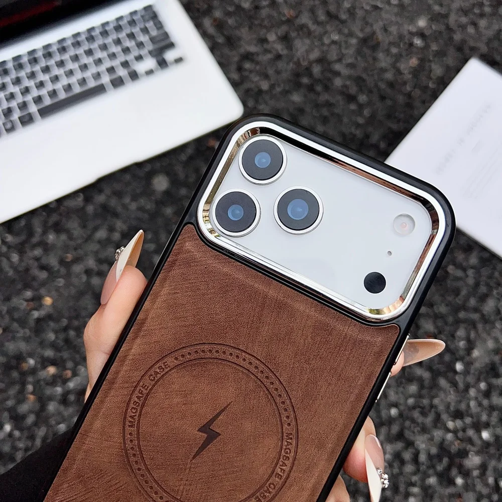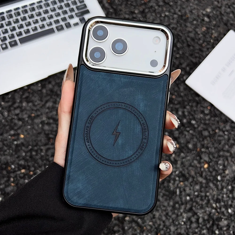 Lightning Charging Leather Magnetic Case For iPhone 17 Air 17 16 15 14 13 Pro Max Plus XS XR for Magsafe Matte Retro Cover