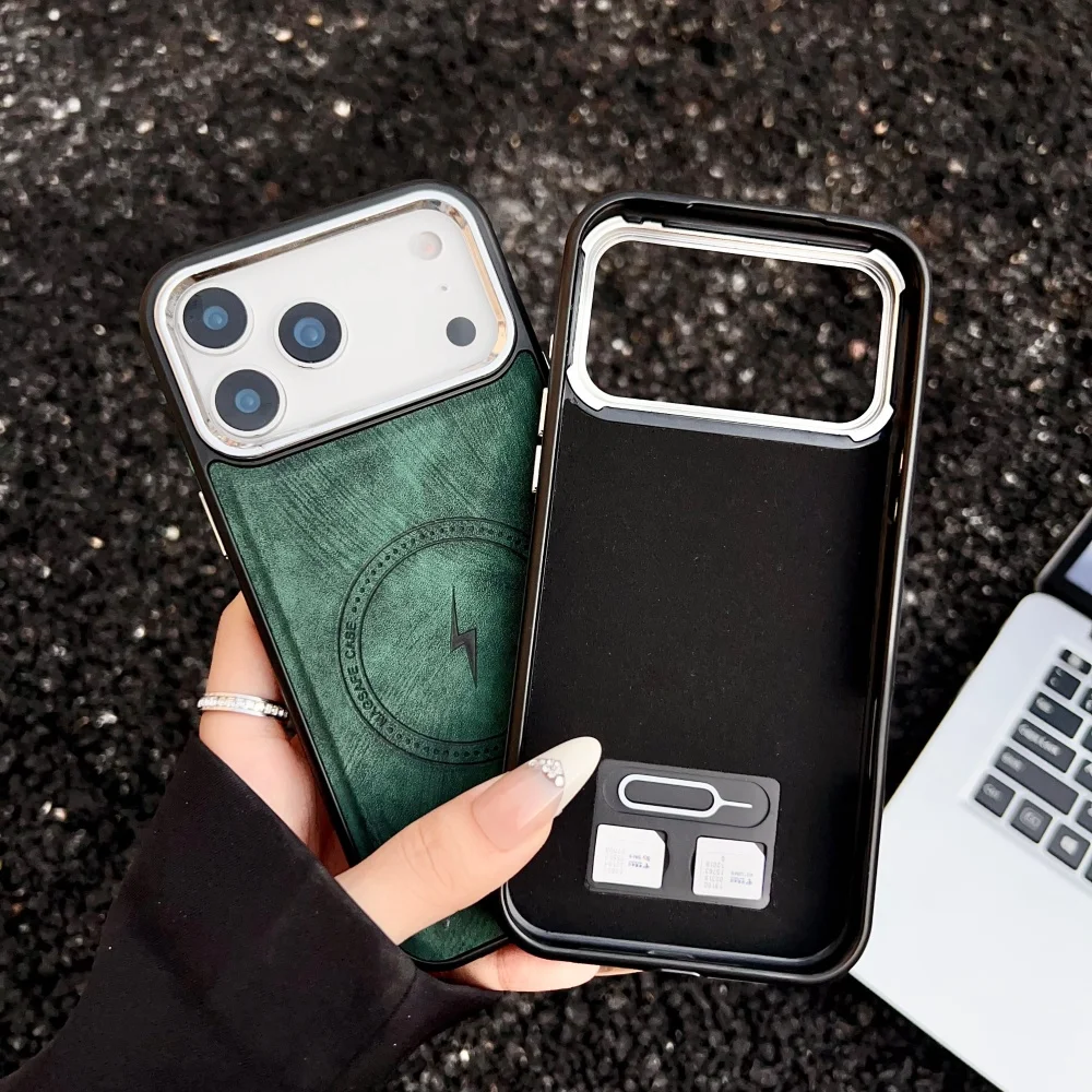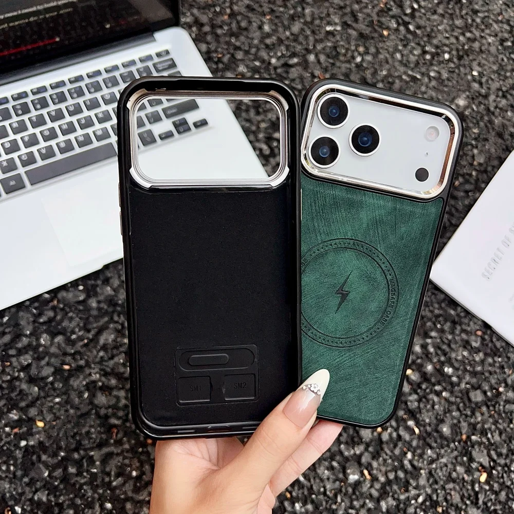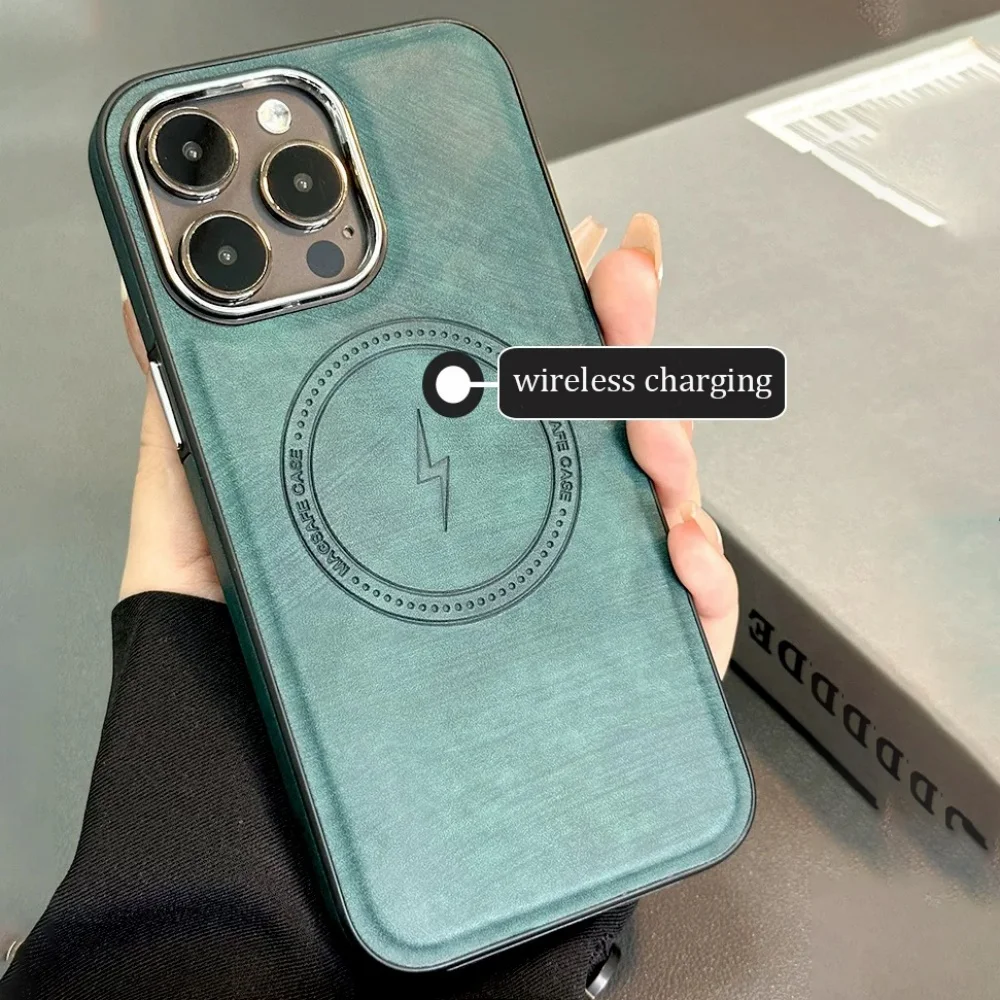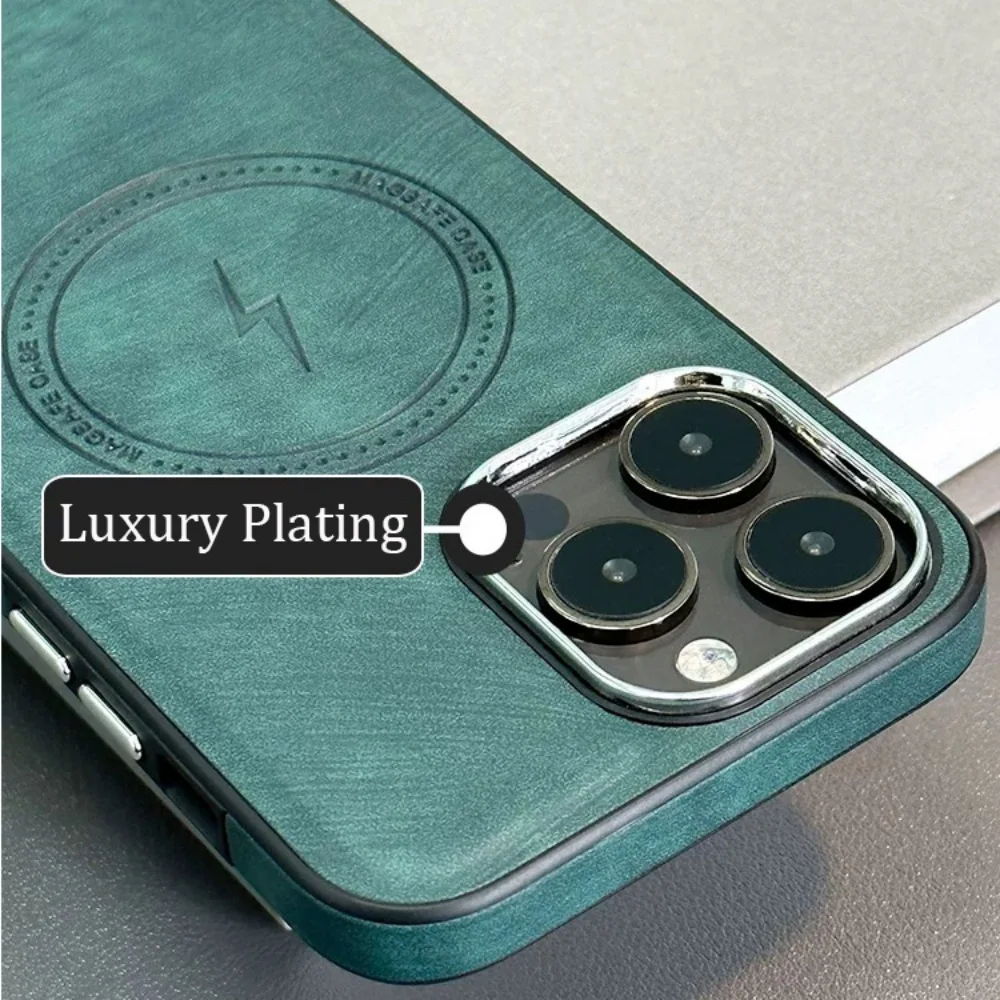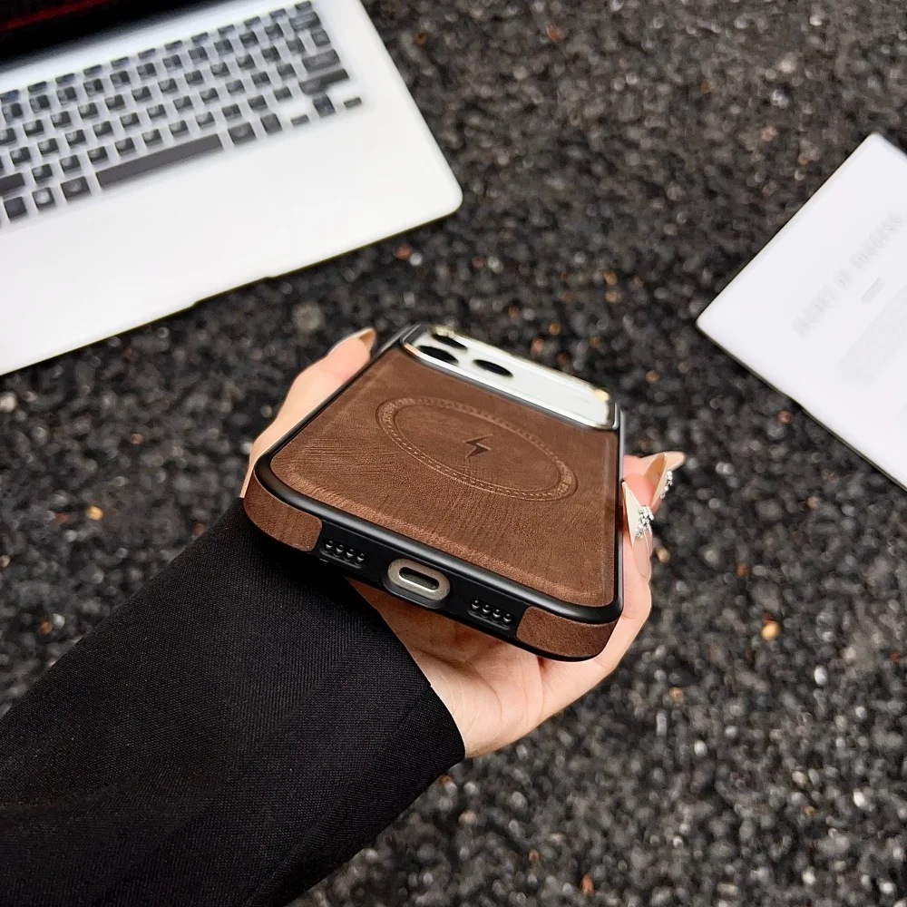 Lightning Charging Leather Magnetic Case For iPhone 17 Air 17 16 15 14 13 Pro Max Plus XS XR for Magsafe Matte Retro Cover
